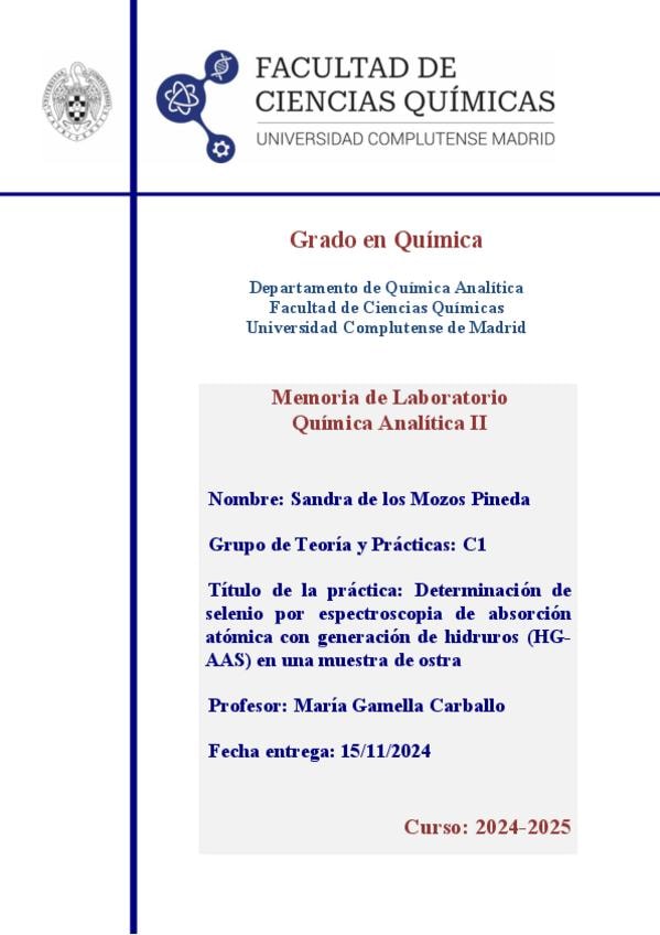He publicado nuevos practicas de 3º Química Analítica II: Informes y hojas de datos (nota: 9,3)