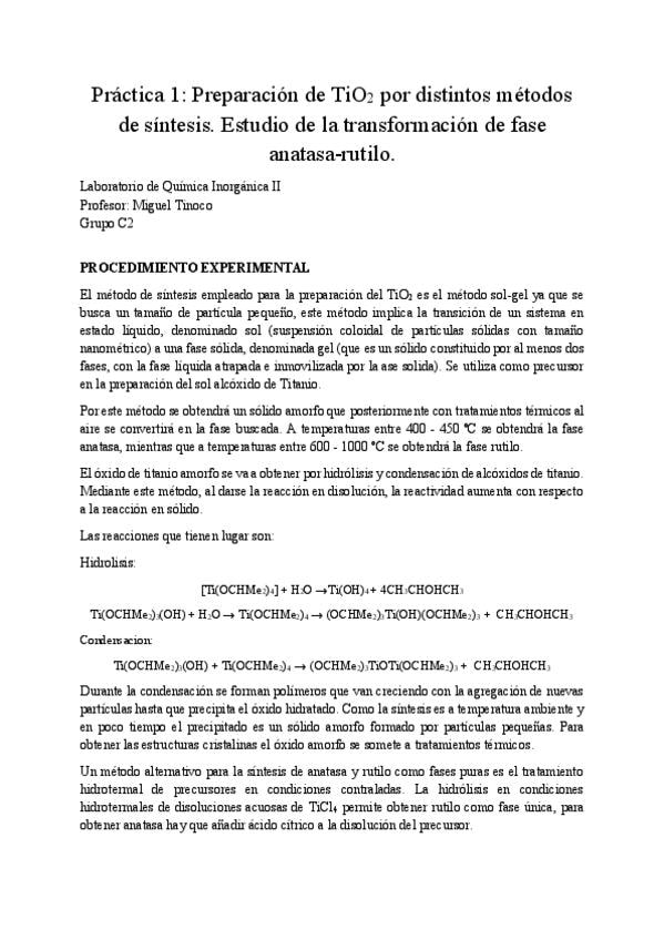 He publicado nuevos practicas de 3º Quimica Inorganica II: Informes 1º cuatri corregidos