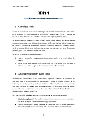 He publicado nuevos apuntes de 1º Teorías de la Criminalidad: Temas completos Esther Pinedo