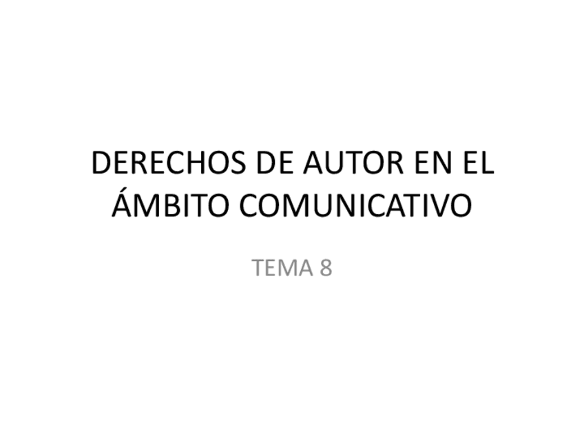 He publicado nuevos apuntes de 1º Derecho Audiovisual: TEMA8 DERECHOS DE AUTOR.pdf