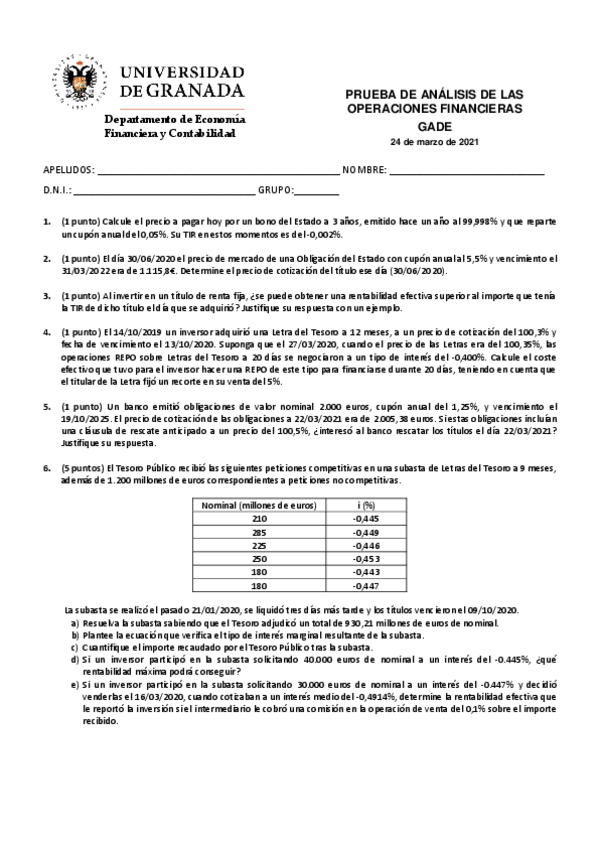 He publicado nuevos examenes de 2º Análisis de Operaciones Financieras: PRUEBA PARCIAL I
