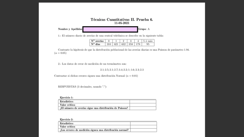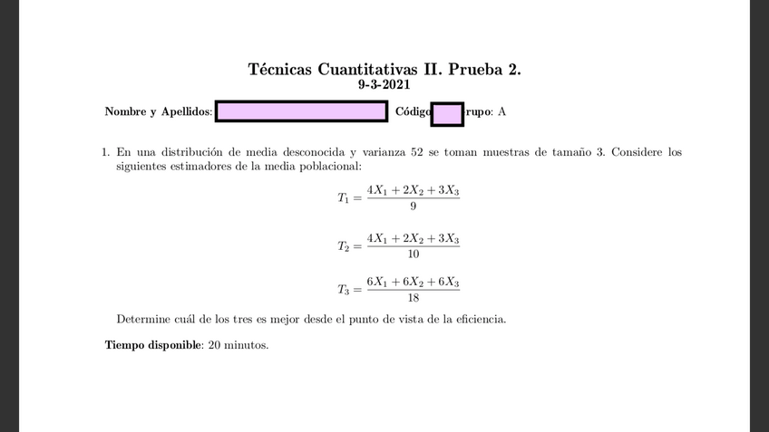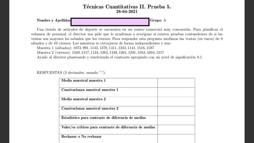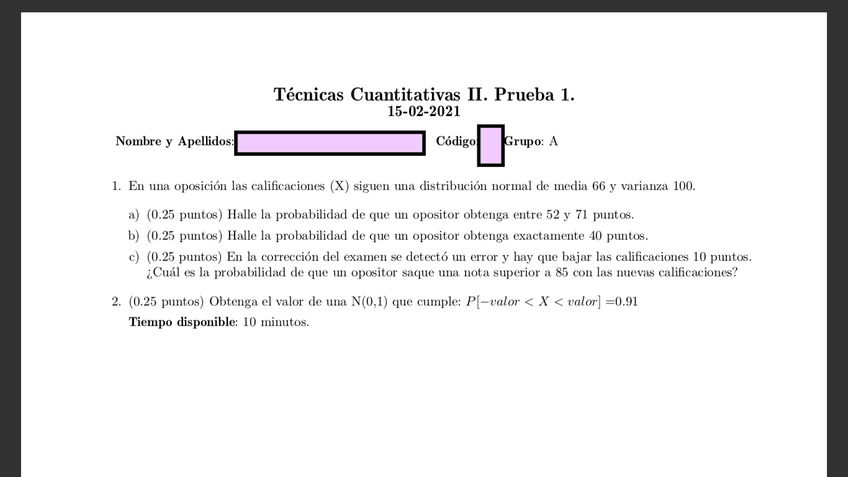 He publicado nuevos examenes de 2º Tecnicas Cuantitativas Ii: PRUEBAS SEMANALES