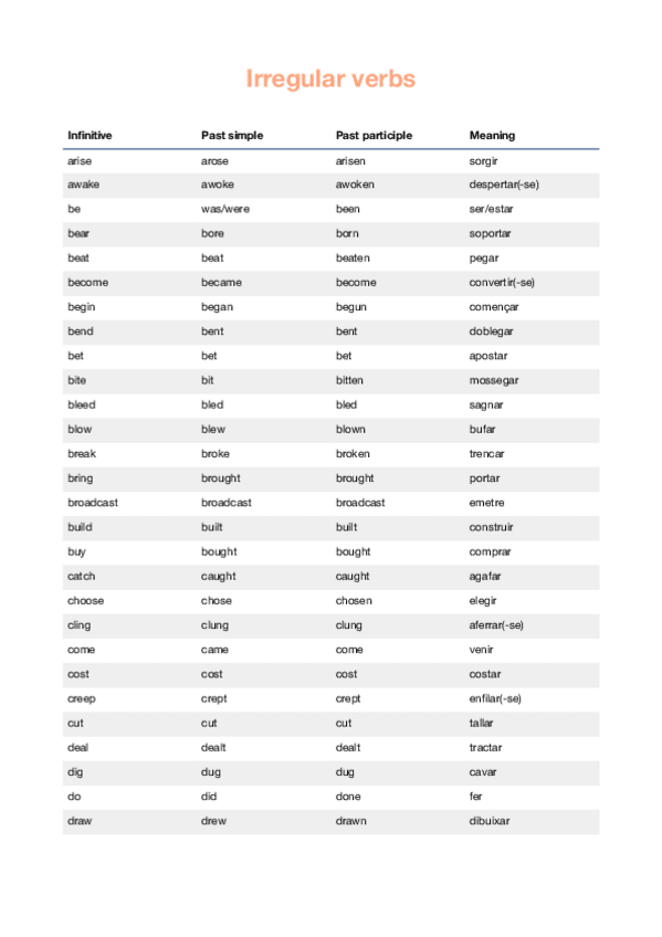 He publicado nuevos apuntes de Inglés: irregular vbs 2