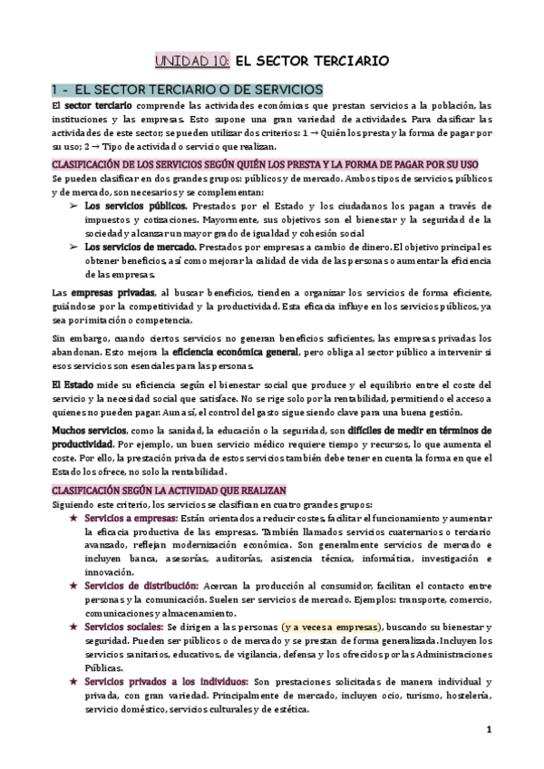 Apuntes sobre el Sector Terciario basados en el libro de texto de la Editorial Santillana.