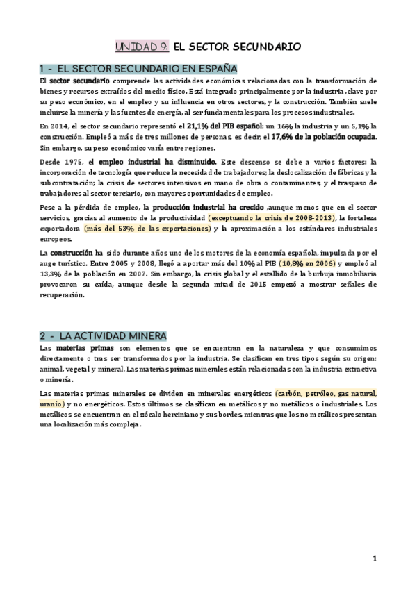 Apuntes sobre el Sector Secundario basados en el libro de texto de la Editorial Santillana.