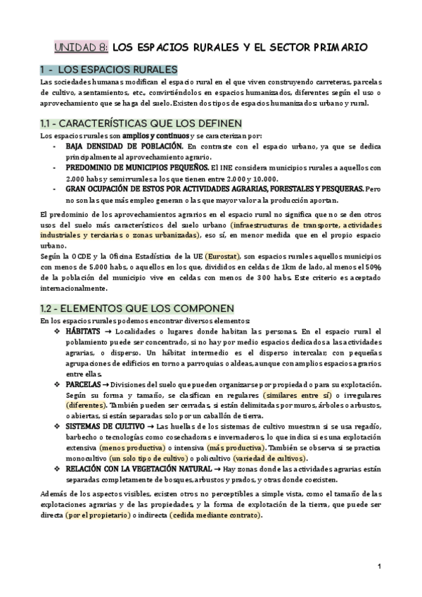 Apuntes sobre los Espacios Rurales y el Sector Primario basados en el libro de texto de la Editorial Santillana.