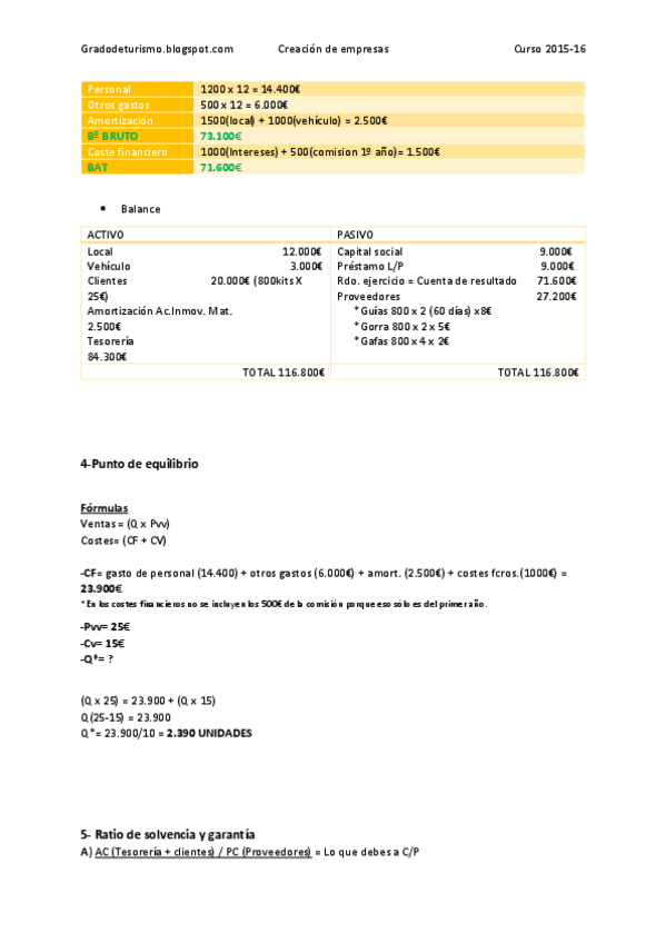 He publicado nuevos apuntes de 4º Creación de Empresas Turísticas: Solución 1º práctica .pdf