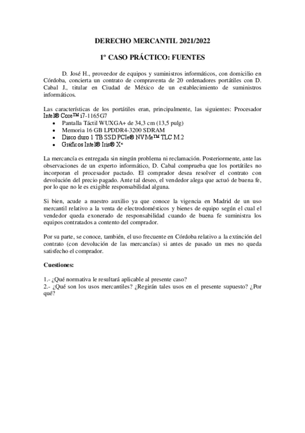 Casos prácticos Derecho mercantil
