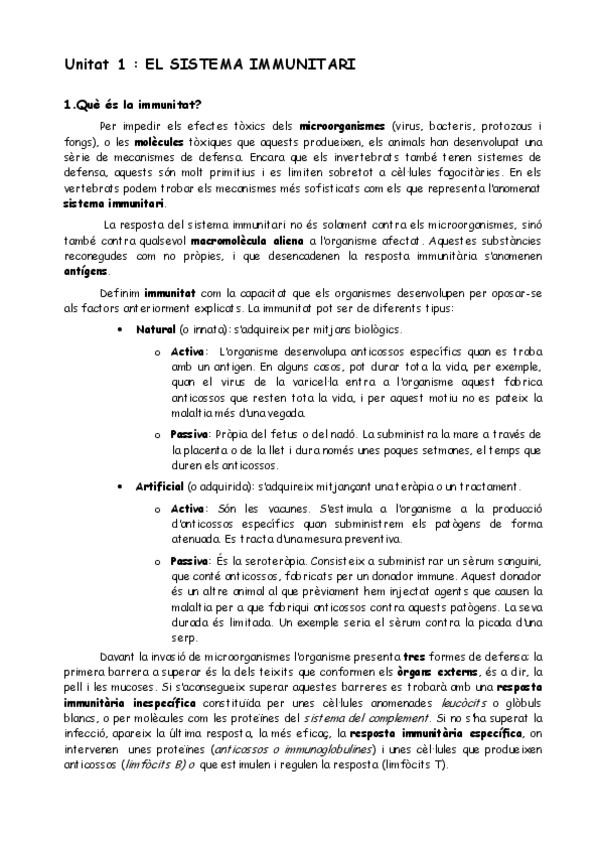 Resum d'IMMUNOLOGIA per les PAU