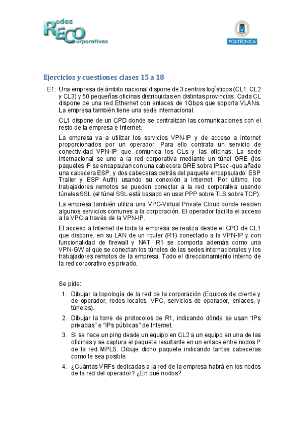 He publicado nuevos ejercicios de 4º Redes Corporativas: Ejercicios