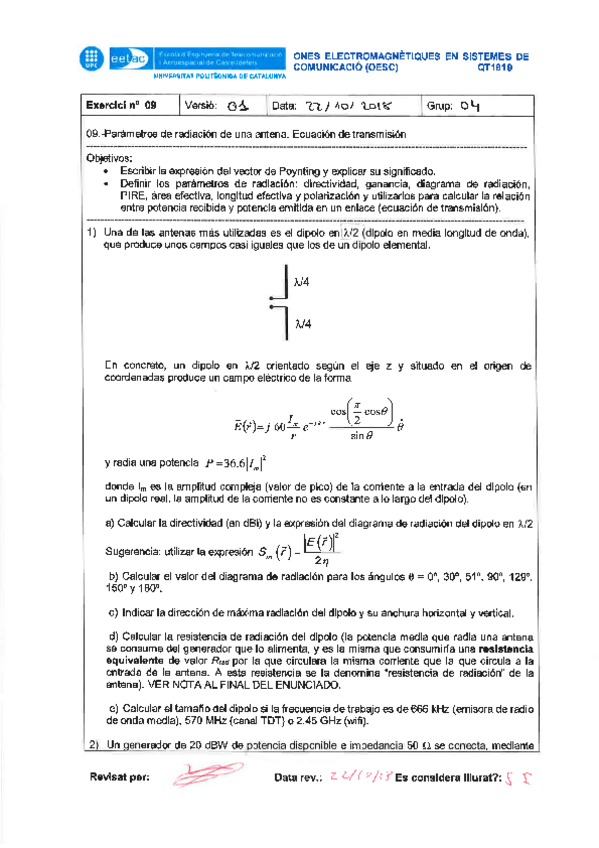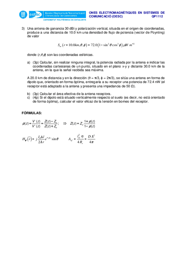 He publicado nuevos apuntes de 2º Ones Electromagnètiques en els Sistemes de Comunicació: Examen abril 2012.pdf