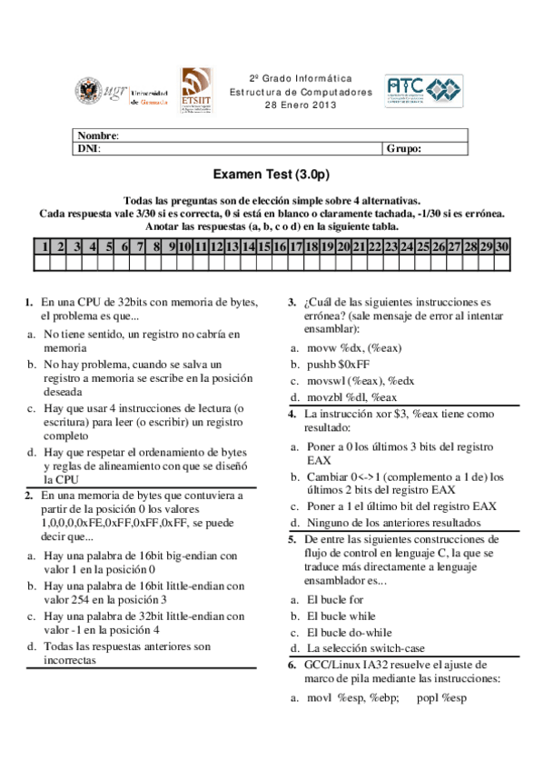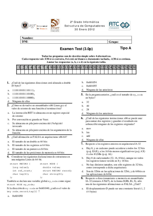 He publicado nuevos examenes de 2º Estructura de Computadores: Examen-febreroTeoria-y-practicas-SOLUCIONADO.pdf