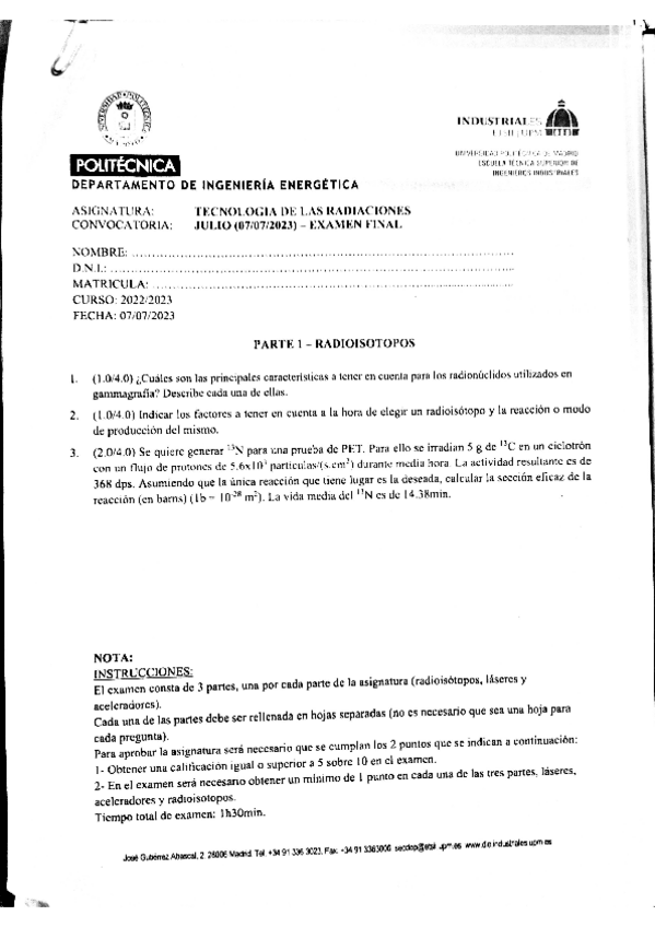 He publicado nuevos examenes de 4º Tecnología de las Radiaciones: EXAMEN JULIO 2023.pdf