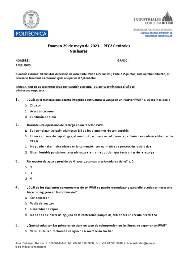 He publicado nuevos examenes de 3º Centrales Nucleares: PEC2 2023 SOLUCIONADO.pdf
