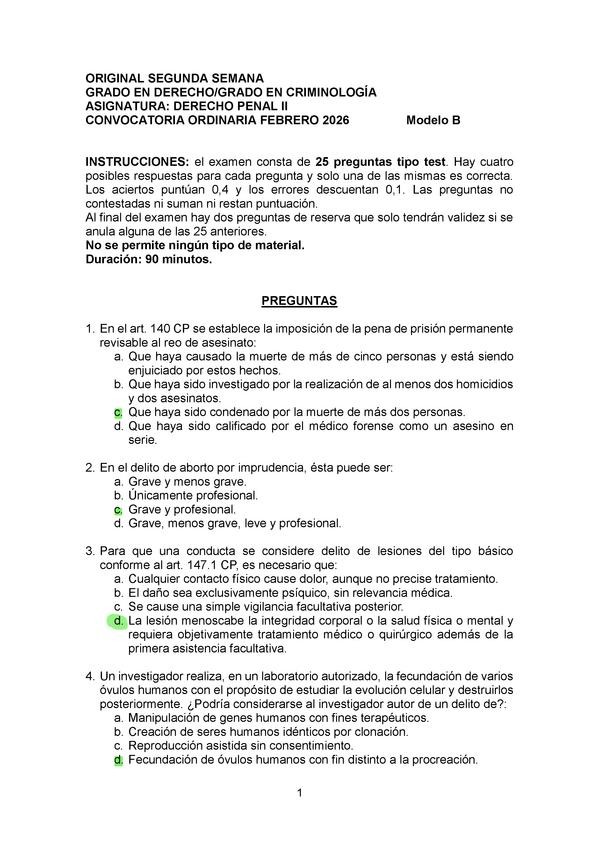 EXAMENES RESUELTOS AÑO 2025-2026 DERECHO PENAL II