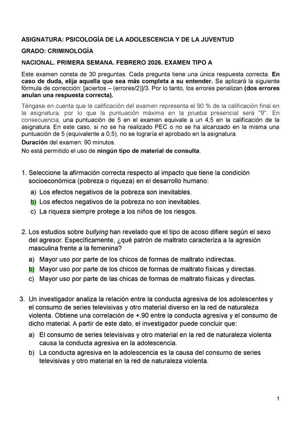EXAMENES RESUELTOS AÑO 2025-2026 PSICOLOGÍA DE LA ADOLESCENCIA Y JUVENTUD