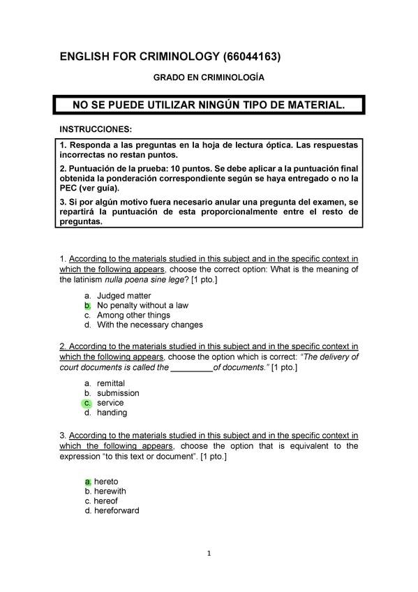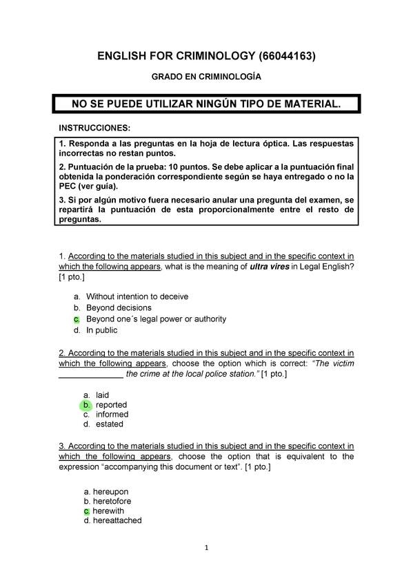 EXAMENES RESUELTOS AÑO 2025-2026 ENGLISH FOR CRIMINOLOGY