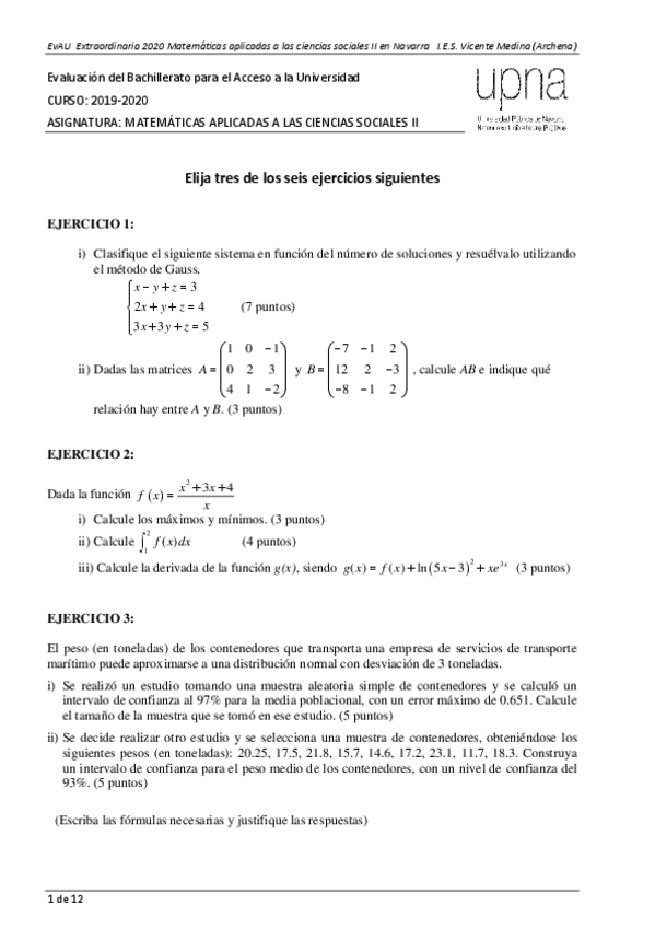 He publicado nuevos examenes de Matemáticas aplicadas a las Ciencias Sociales II: 2oBachCCSSEBAUNavarra2020-OrdinariaResueltoJuanAntonioMG.pdf