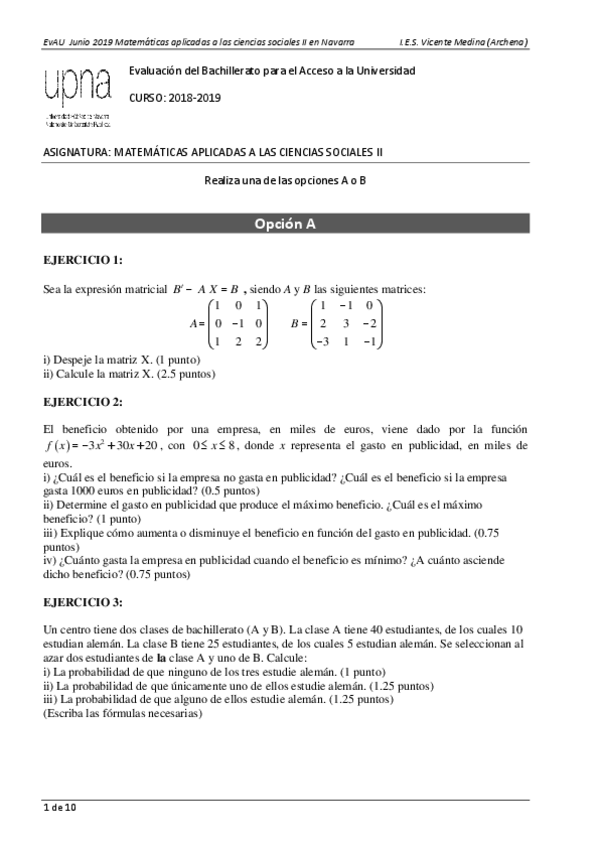 He publicado nuevos examenes de Matemáticas aplicadas a las Ciencias Sociales II: 2oBachCCSSEBAUNavarra2019-JulioResueltoJuanAntonioMG.pdf