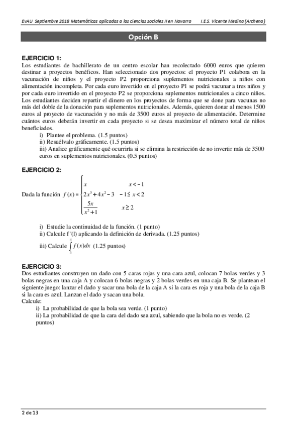He publicado nuevos examenes de Matemáticas aplicadas a las Ciencias Sociales II: 2oBachCCSSEBAUNavarra2018-SeptiembreResueltoJuanAntonioMG.pdf