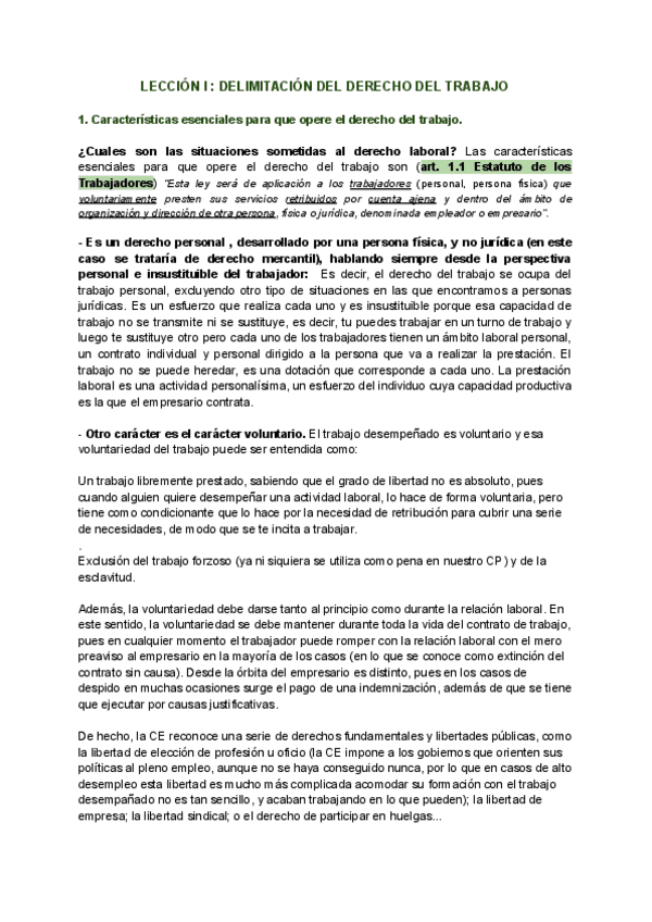 APUNTES COMPLETOS DERECHO DEL TRABAJO I