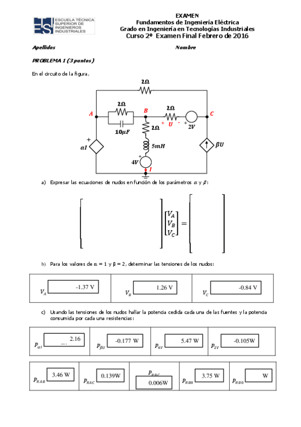 He publicado nuevos examenes de 2º Fundamentos de Ingeniería Eléctrica: Examen Septiembre Resuelto 2020
