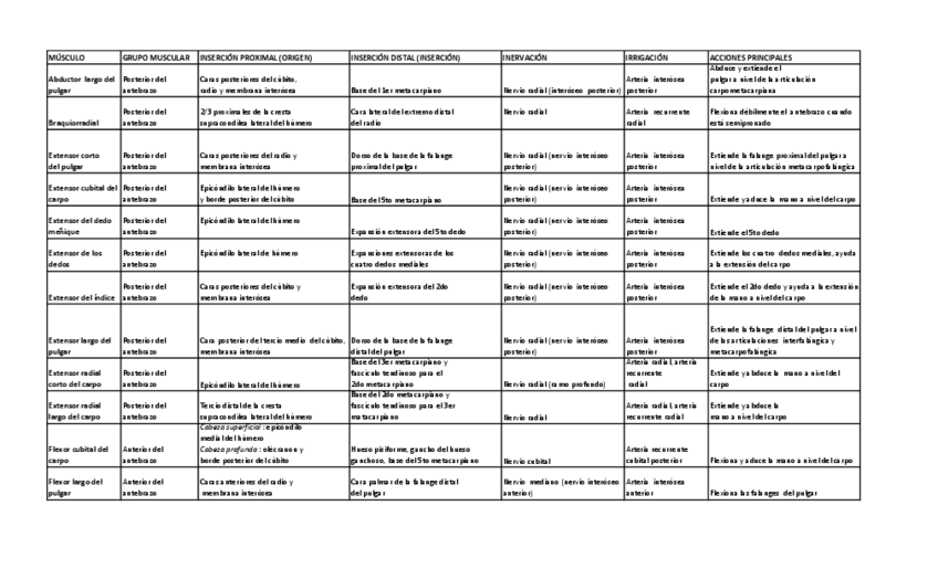 He publicado nuevos apuntes de 1º Anatomía: Cuadro de músculos locomotor Netter