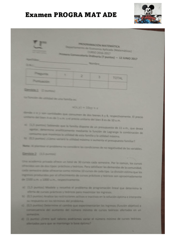 He publicado nuevos examenes de 1º Programación Matemática: Examen-programacion-ADE.pdf