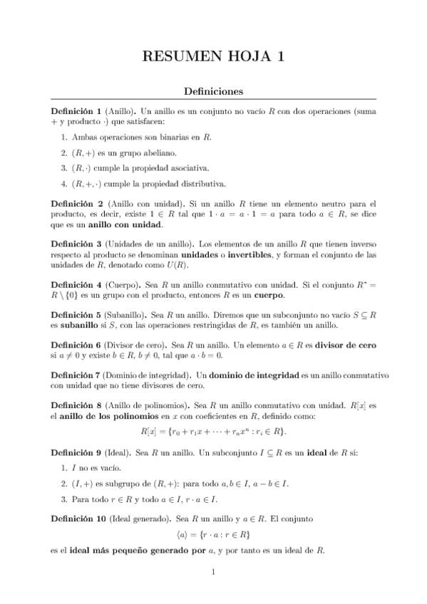 Resumen de las definiciones, teoremas y propiedades que se usan en cada hoja