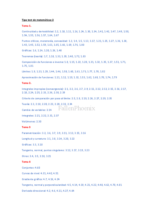 Guía clasificada de Mates II. He organizado todos los problemas de examen y preguntas tipo test del libro de la asignatura por temas específicos.