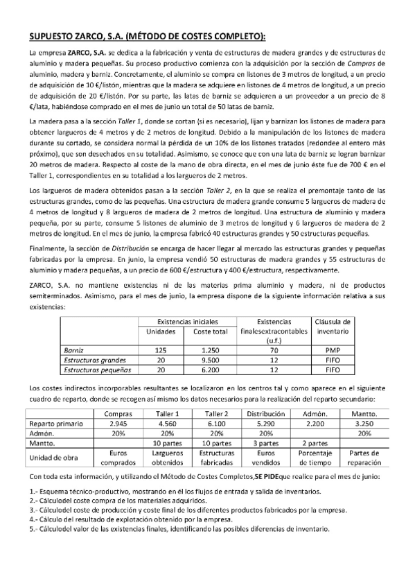 He publicado nuevos ejercicios de 2º Sistemas de Costes e Información Económica: SUPUESTO ZARCO RESUELTO.pdf