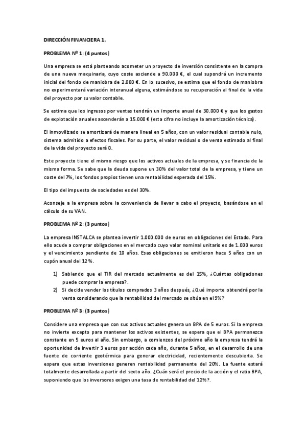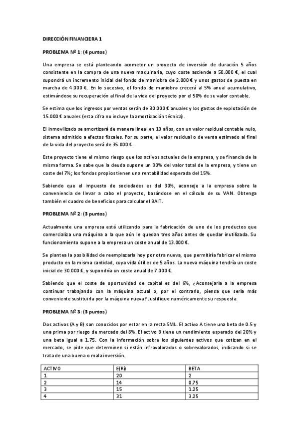 Exámenes de Dirección Financiera