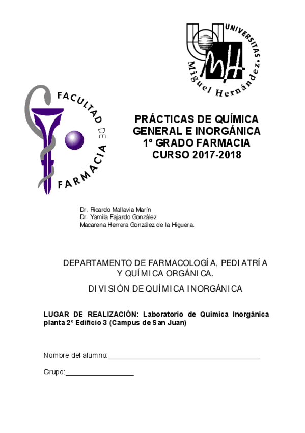 He publicado nuevos practicas de 1º Química General e Inorgánica: Practicas QI