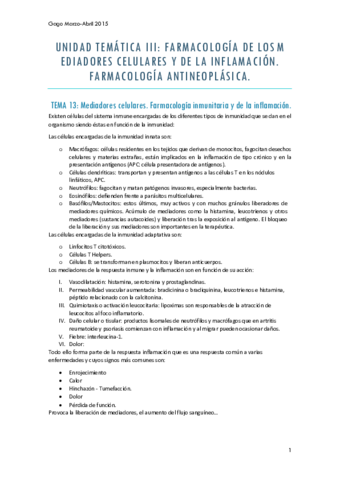 He publicado nuevos apuntes de 3º Farmacología y Farmacoterapia I: Tema 13 Farmacologia inmunitaria y de la inflamación.pdf