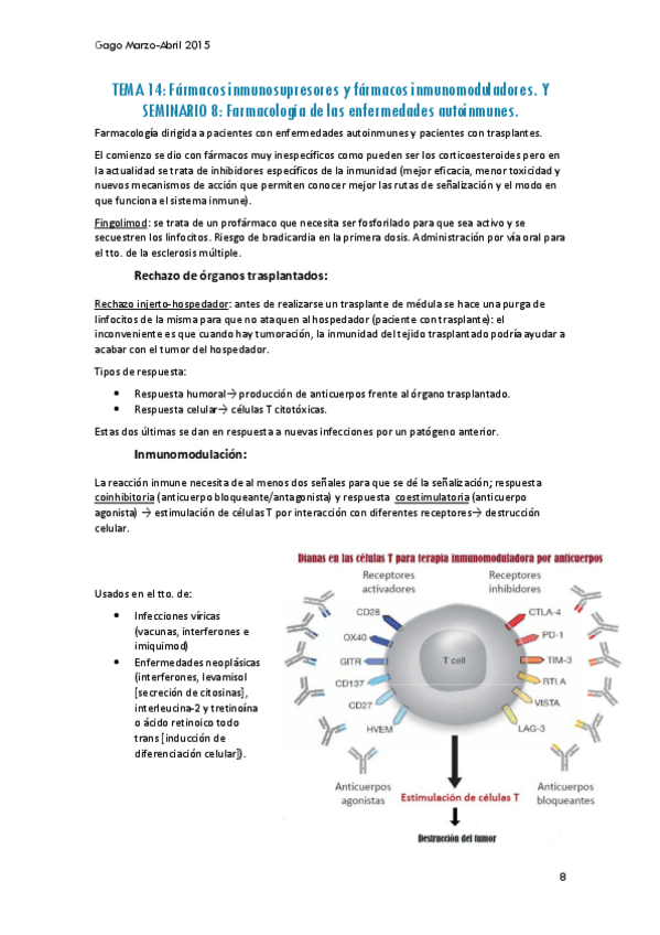 He publicado nuevos apuntes de 3º Farmacología y Farmacoterapia I: Tema 14 y seminario 8 Enfermedades autoinmunes.pdf