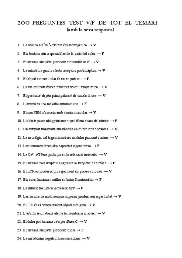 200 Preguntes V/F de tot el temari de cara a examen final