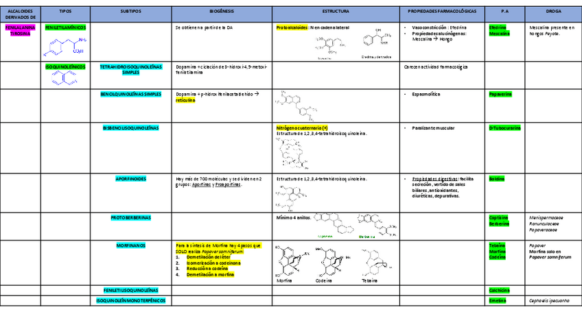 He publicado nuevos apuntes de 4º Farmacognosia y Fitoterapia: TABLAS-ALCALOIDES.pdf