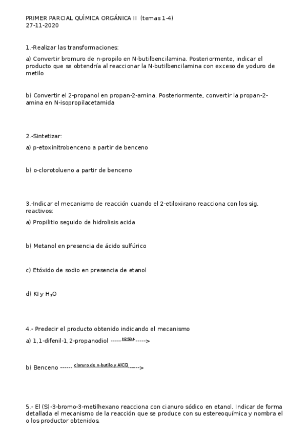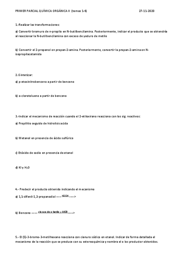 He publicado nuevos examenes de 1º Química Orgánica I: Parcial-QO1-2019.pdf