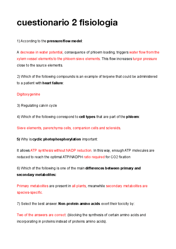 He publicado nuevos apuntes de 1º Fisiología Vegetal: Cuestionarios examen