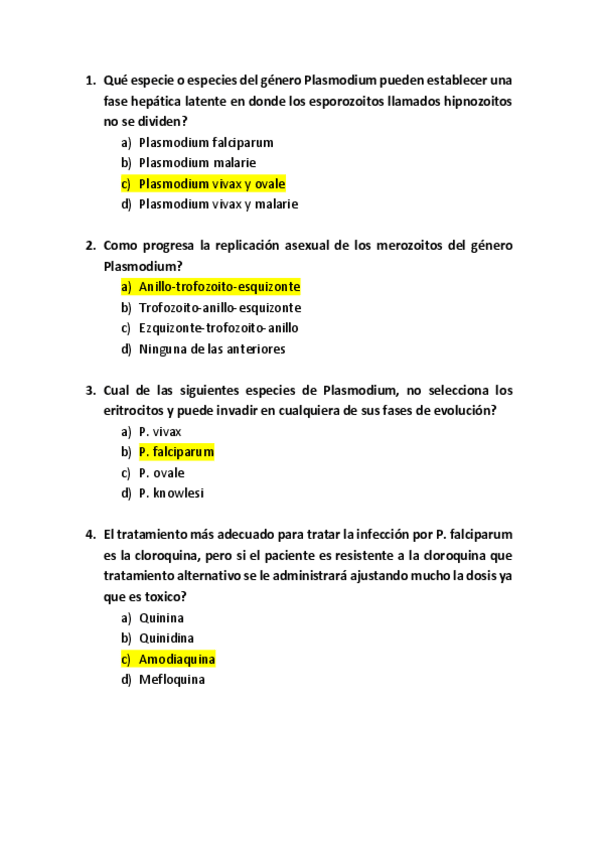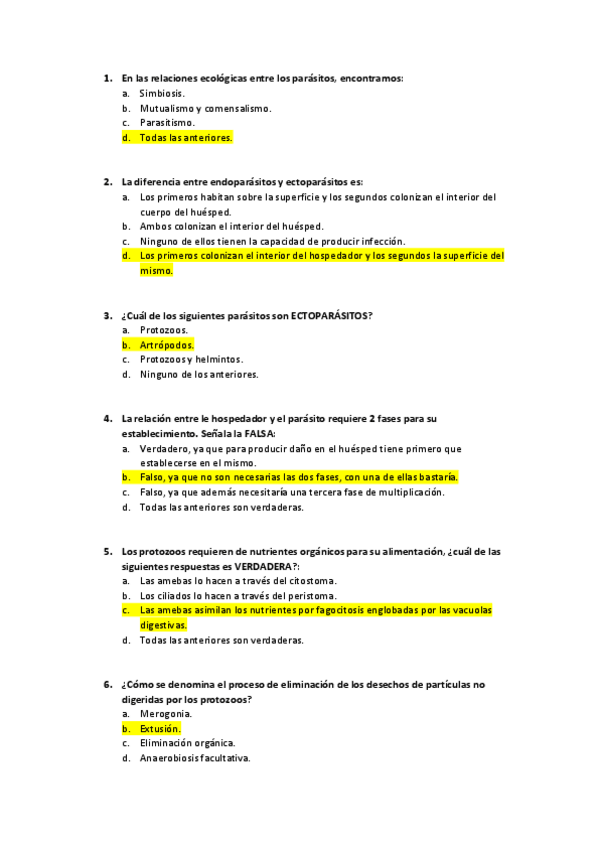 mix de exámenes 1º parcial parasitología