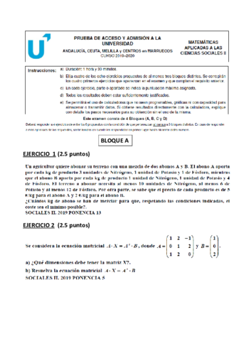 He publicado nuevos apuntes de Matemáticas aplicadas a las Ciencias Sociales II: Modelos examenes de matematicas 2020