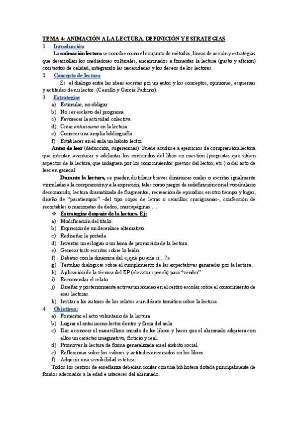 Tema 4. Animación a la lectura