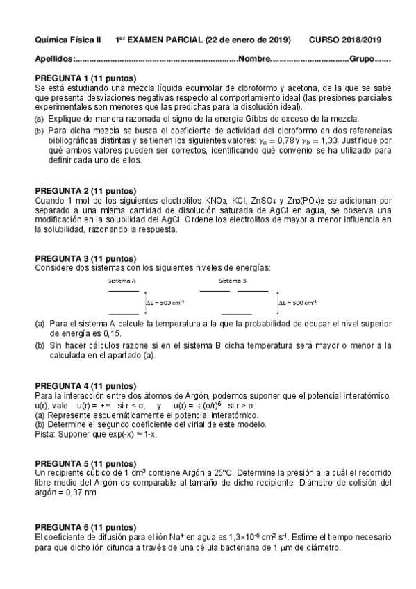 He publicado nuevos examenes de 3º Química Física II: 1º parcial corregido