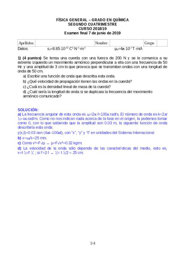 He publicado nuevos examenes de 1º Física General: Final7junio2019FisicaGeneralGradoQuimicaconSolucion.pdf