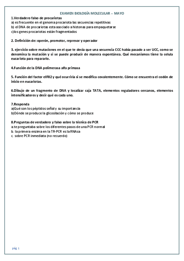 He publicado nuevos examenes de 2º Biología Molecular: EXAMEN-BIO-MOL-MAYO.pdf