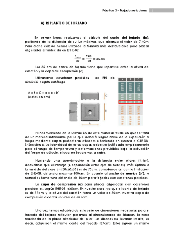 He publicado nuevos practicas de 3º Construccion III: Forjado Reticular: Memoria y Planimetria
