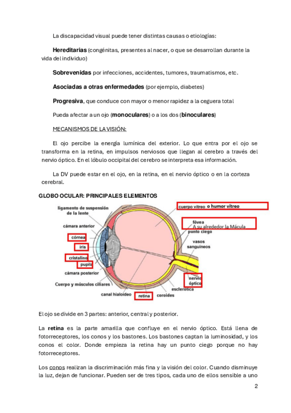 Este es un temario muy completo de discapacidad visual, que une el power de la asignatura, varias páginas web de la docente y su libro. Tiene mucha información resumida y bien explicada con anotaciones de la docente en clase.
