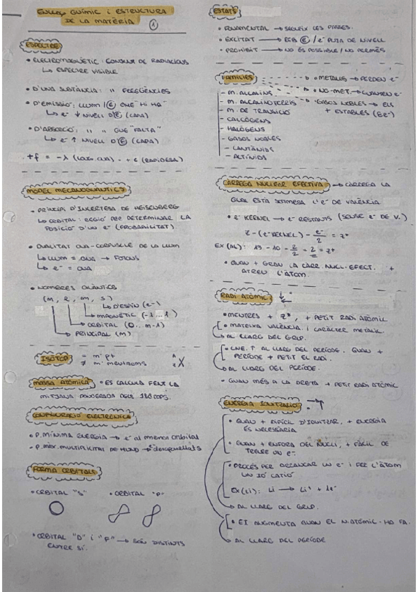 Tema: Enllaç químic i estructura de la matèria. Apunts escrits en català, nivell 2n de batxillerat.