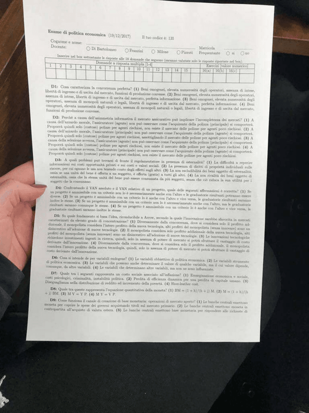 Esame Politica Economica (19/12/2017)