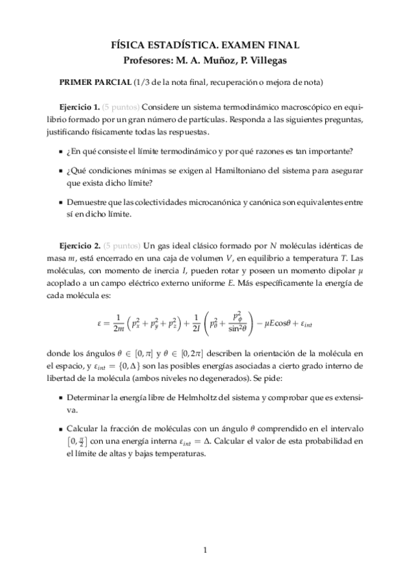 Exámenes Física Estadística